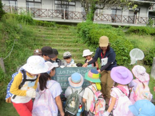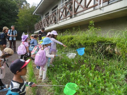 10月のたんけん隊は、22人のおともだちとたんけんに出かけました。秋の気配を感じながら、丘を目指します。出発してすぐ、バッタや蝶に出会いました!