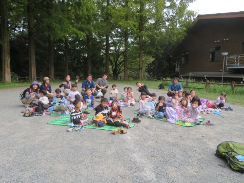 おやつはみんなで!おいしい時間を過ごしました。おやつ後に、少し時間があったので広場で遊びました。かけっこをしたり、生き物をさがしたり、まだまだ遊び足りない!といった様子でした。あっという間にまたねの時間。今回は、秋をたくさん見つけられました。次回は11月、さらに秋深まった七沢で、またみんなと素敵な発見ができるのを楽しみにしております。ご参加いただきありがとうございました。(山美)