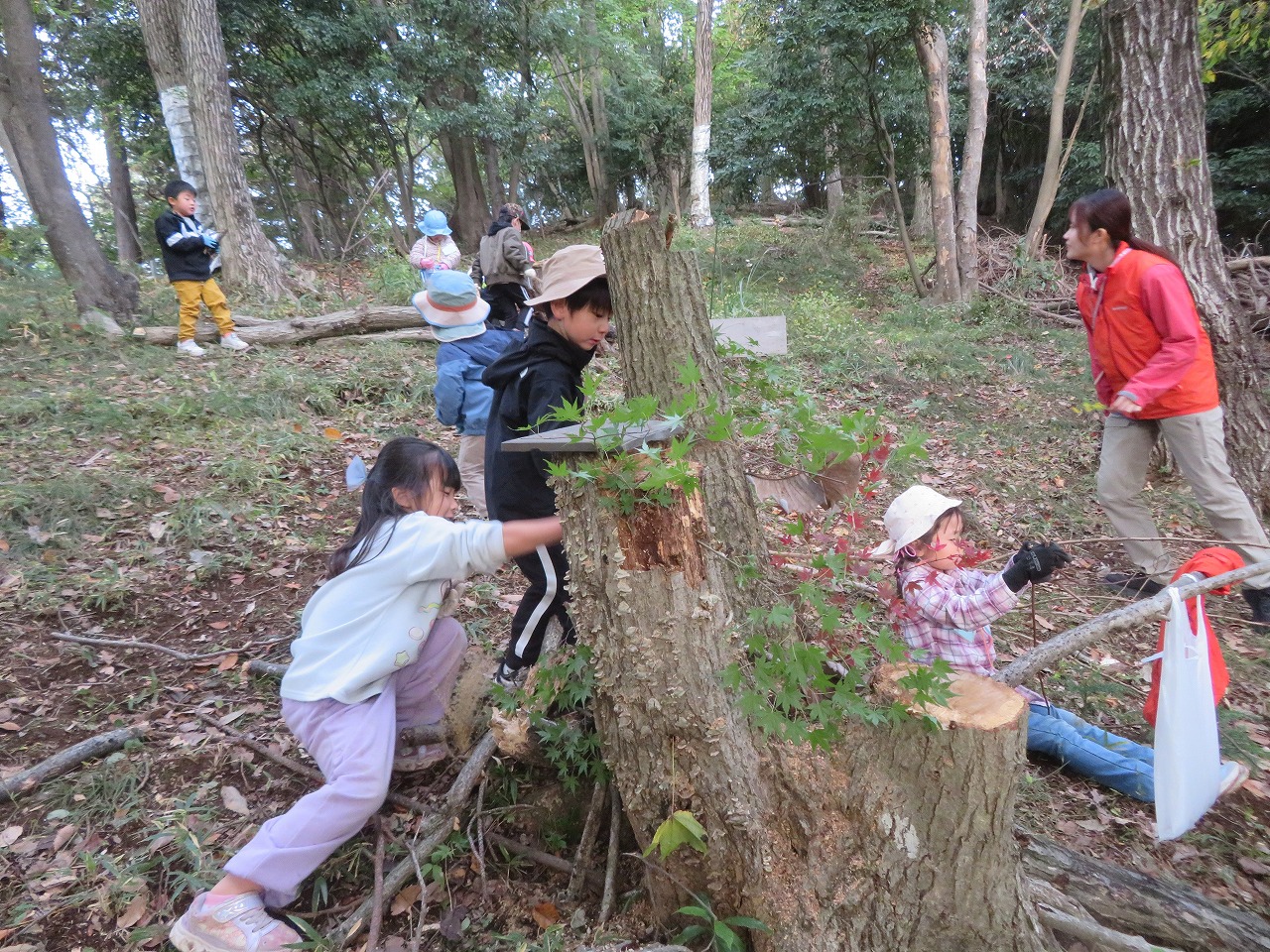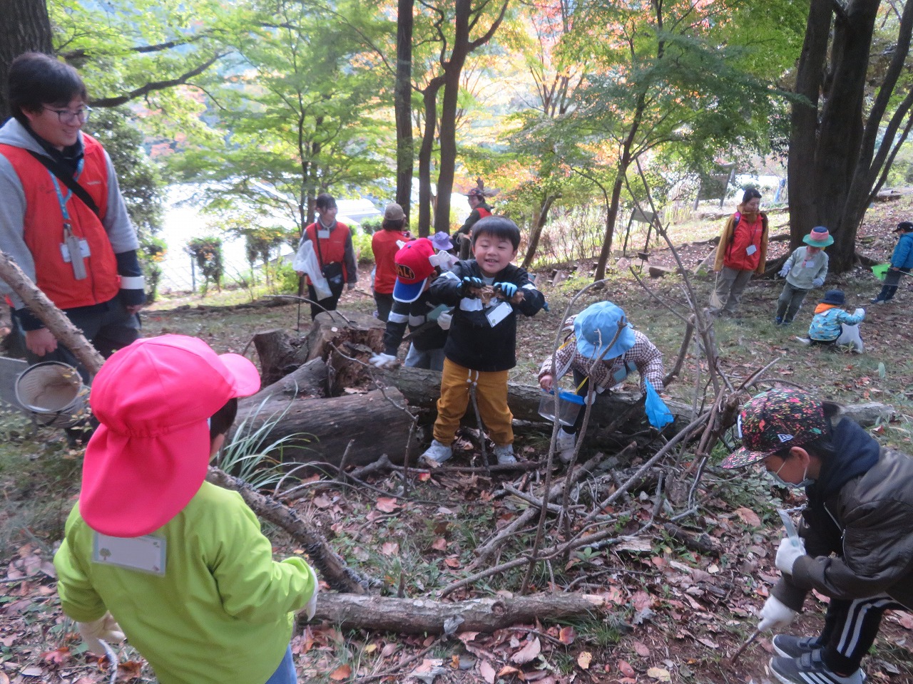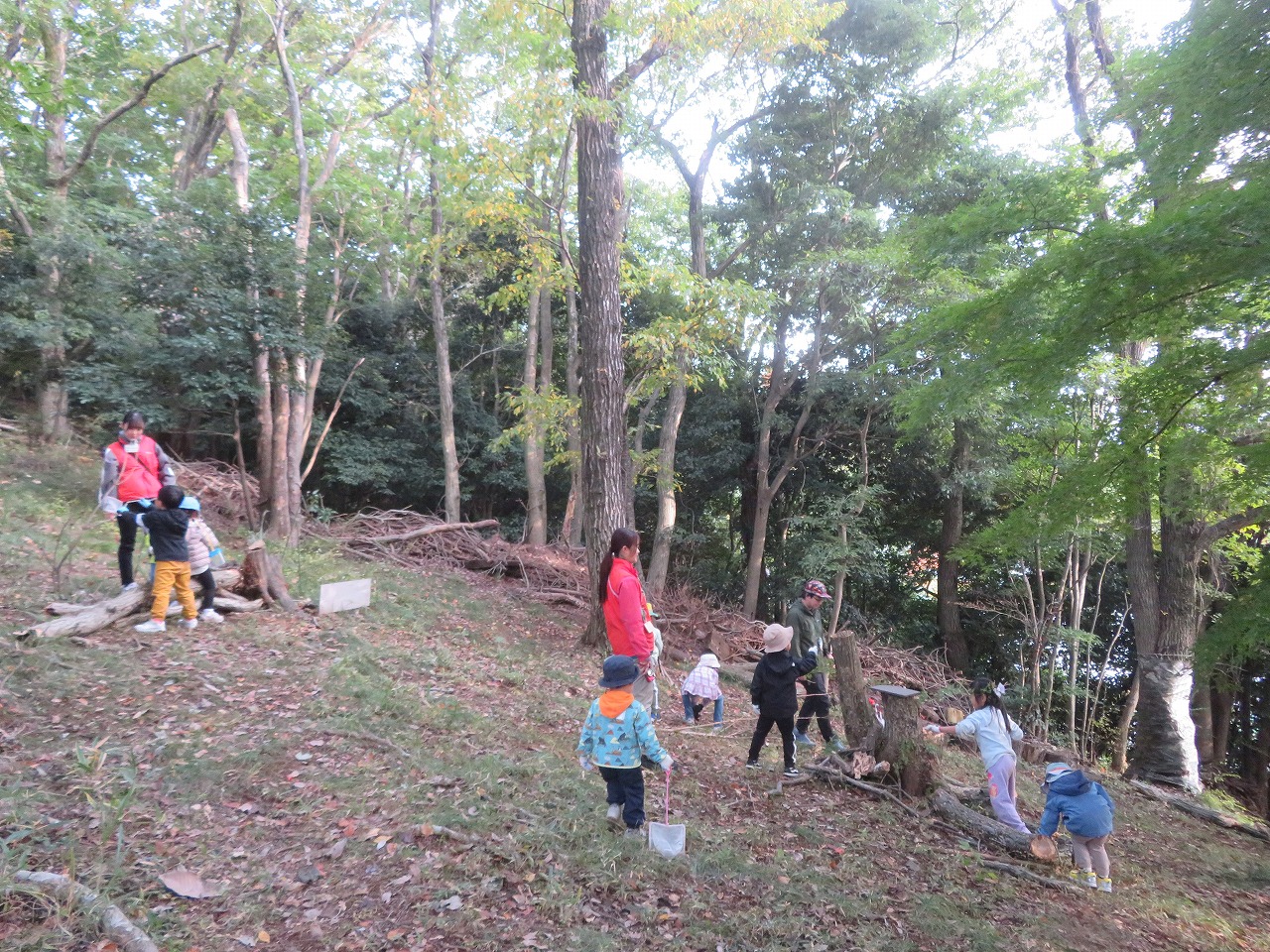 今回は、ななさわ山の木の枝を使ったおうち作りや、秋の虫探し(少なくなったからこそ、出会ったらすごいんです!)様々な種類のどんぐり拾い、落ち葉あそびなどを楽しみました。家づくりという遊びに興味を持った子たちが多く、同じ遊びを通して、園を越えたおともだち同士の声を掛け合う姿が多く見られました。次回は出張開催です!七沢とは違うフィールドで、新たなあそびができるのを楽しみにしております。ご参加いただきありがとうございました。(山美)