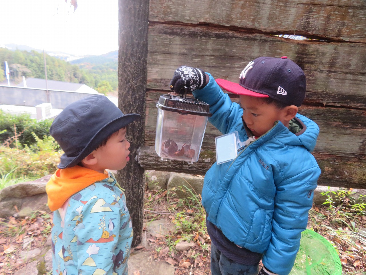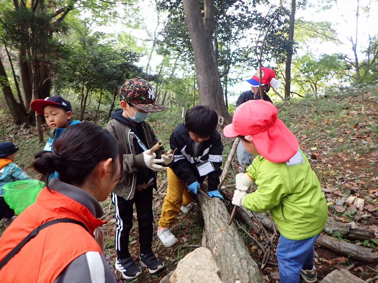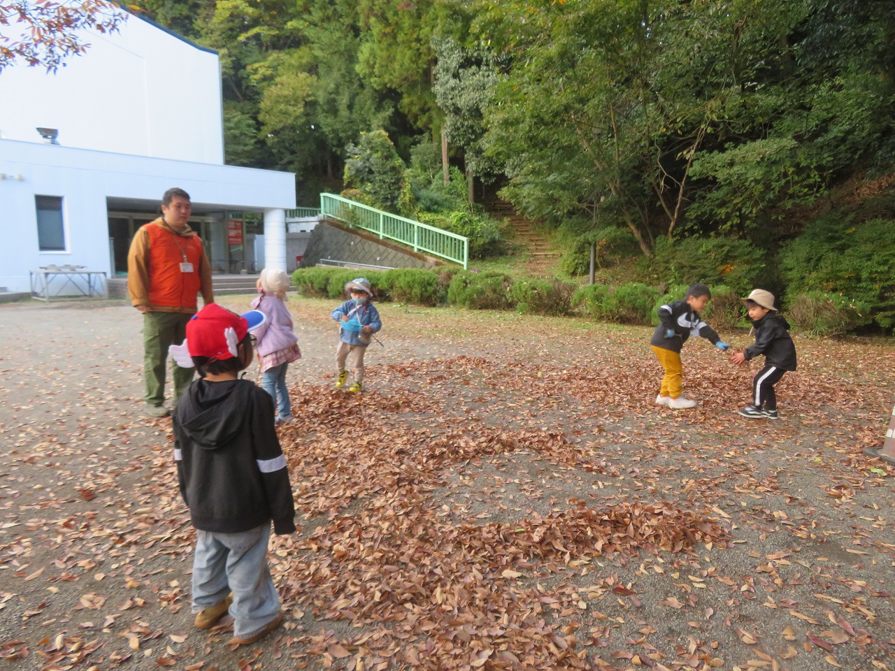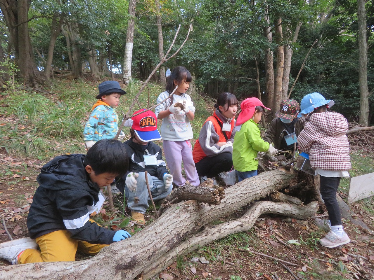 今回は、ななさわ山の木の枝を使ったおうち作りや、秋の虫探し(少なくなったからこそ、出会ったらすごいんです!)様々な種類のどんぐり拾い、落ち葉あそびなどを楽しみました。家づくりという遊びに興味を持った子たちが多く、同じ遊びを通して、園を越えたおともだち同士の声を掛け合う姿が多く見られました。次回は出張開催です!七沢とは違うフィールドで、新たなあそびができるのを楽しみにしております。ご参加いただきありがとうございました。(山美)