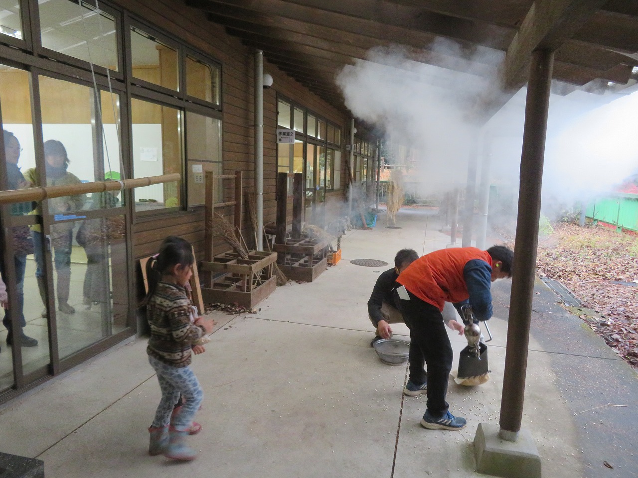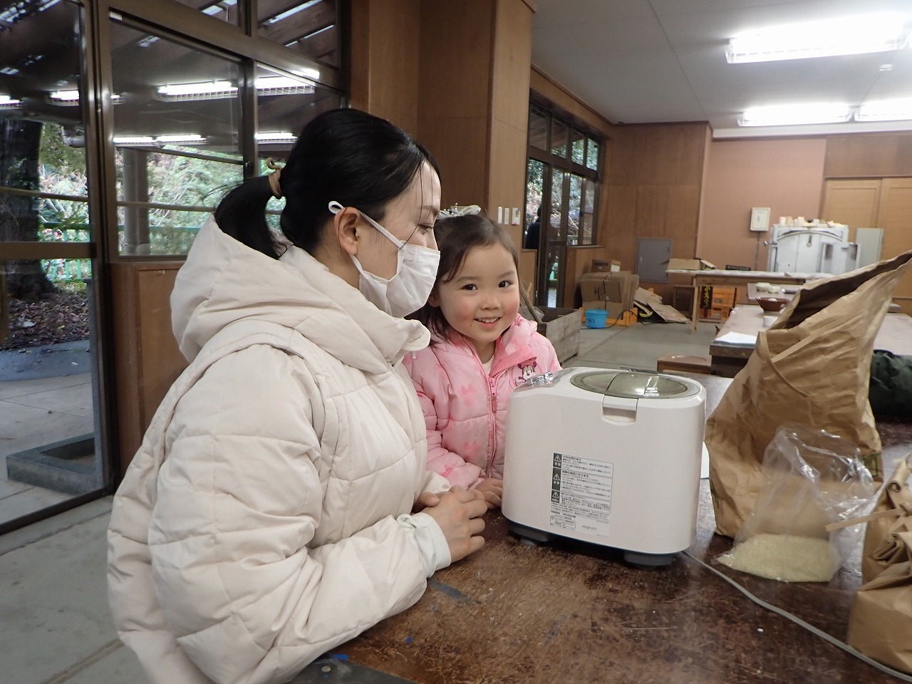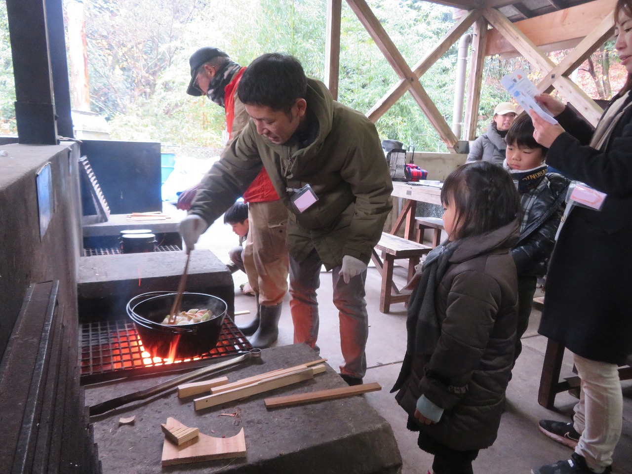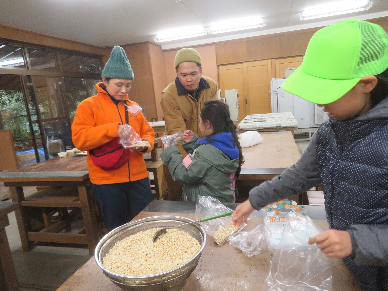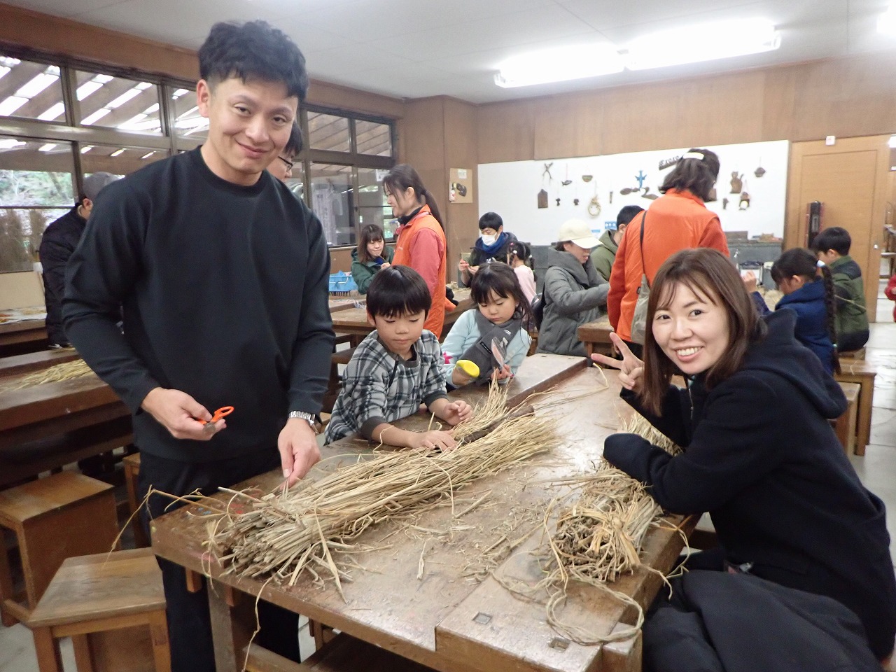 ご飯も豚汁もとても美味しく、完売していました!昼食後は、稲わらのミニほうきづくり、竹の名前入りキーホルダーやお米のできるまでの展示を見たり、家族ごとに炊いたご飯で作った五平餅を味わいました!