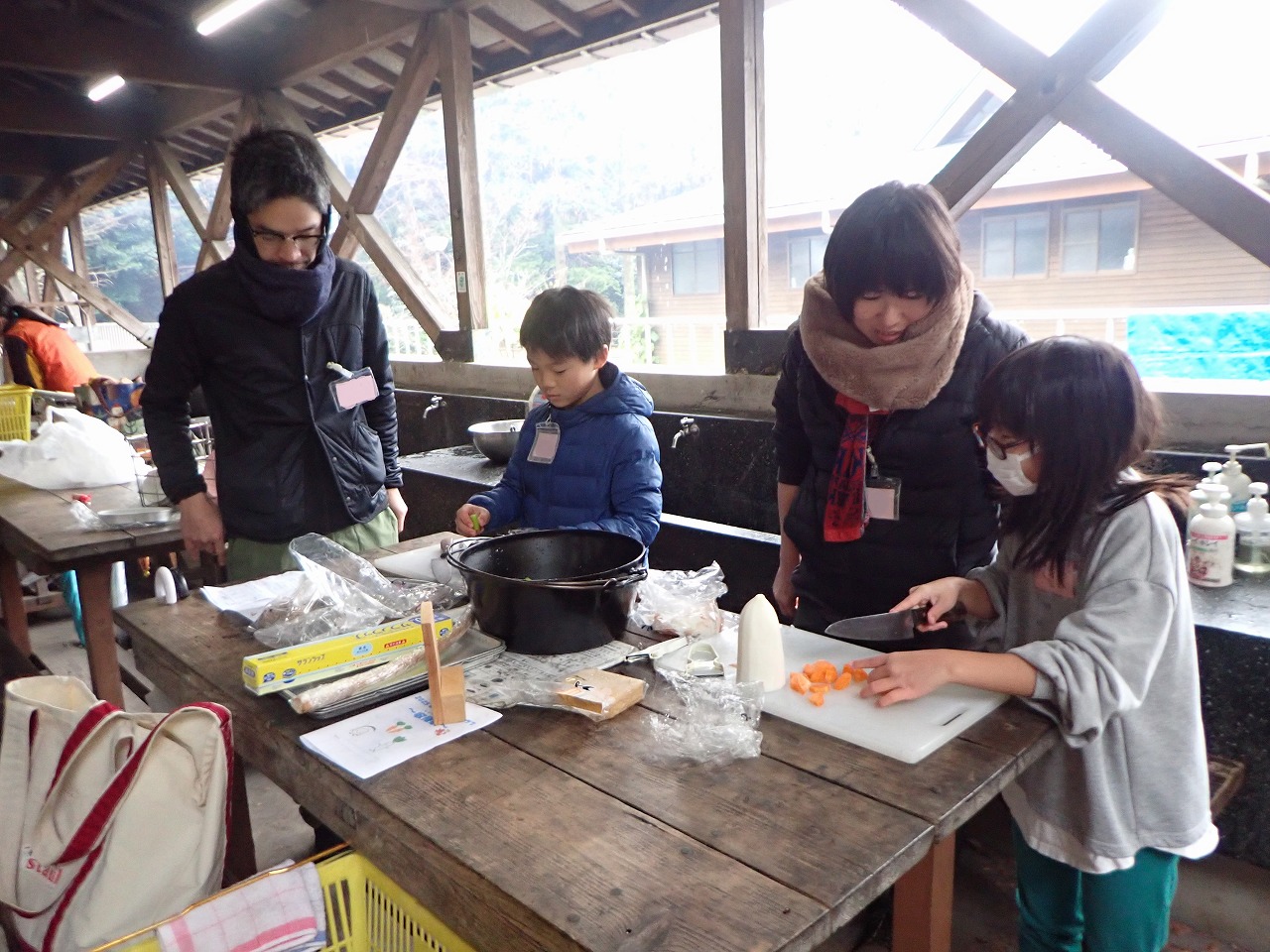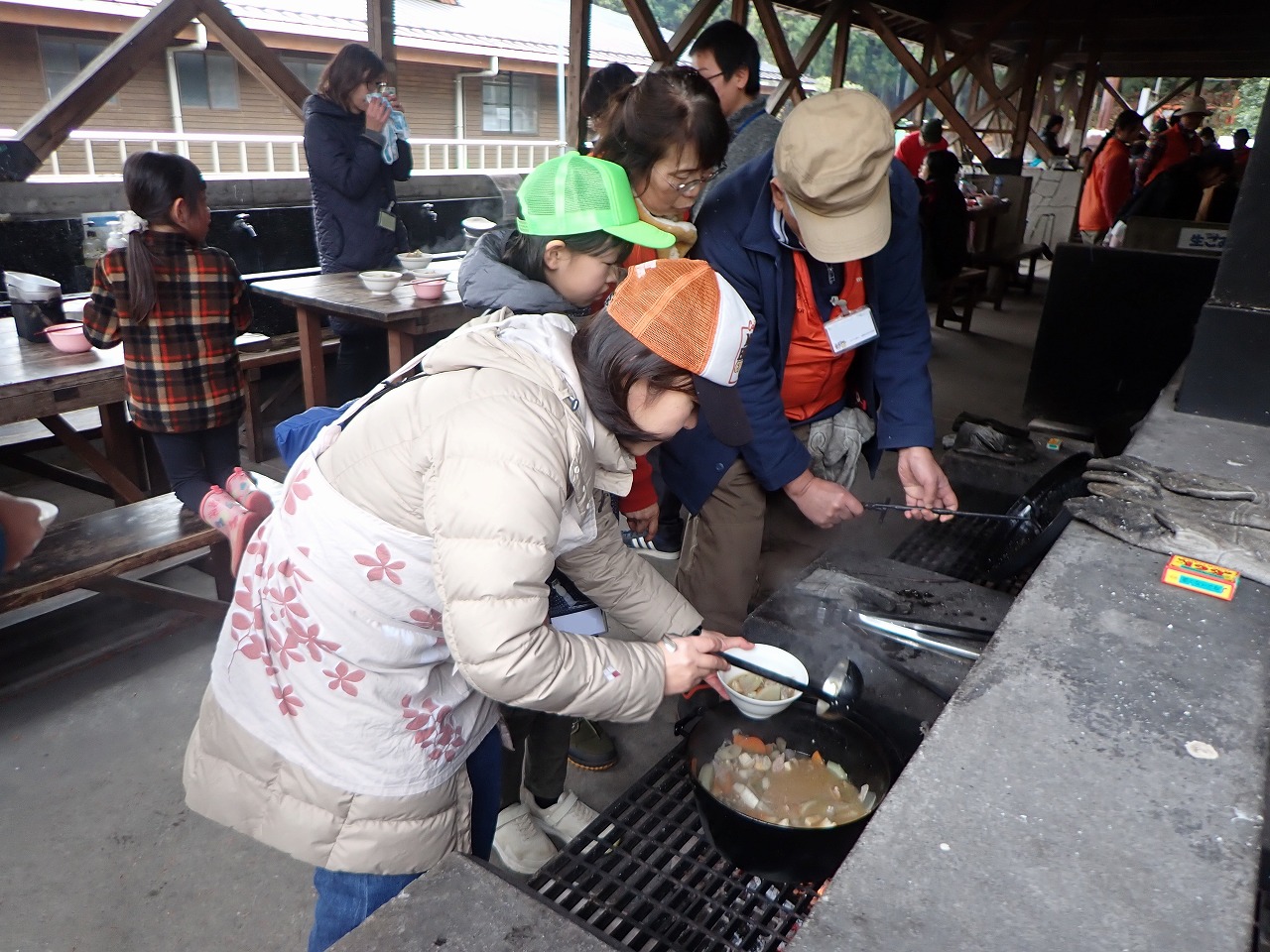 初めに、新米をかまどで炊き、あわせて豚汁も班ごとに作りました。みなさんとても上手にご飯が炊けていました!ふたを開けると、新米の良い香りが漂っていました。