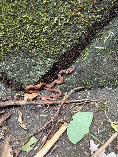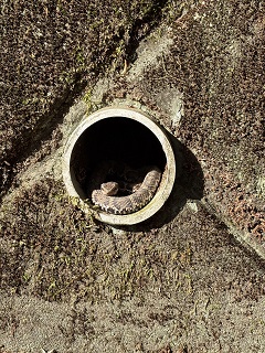 右は、ニホンマムシです。所内のコンクリート壁の排水パイプの中で日向ぼっこをしていました。