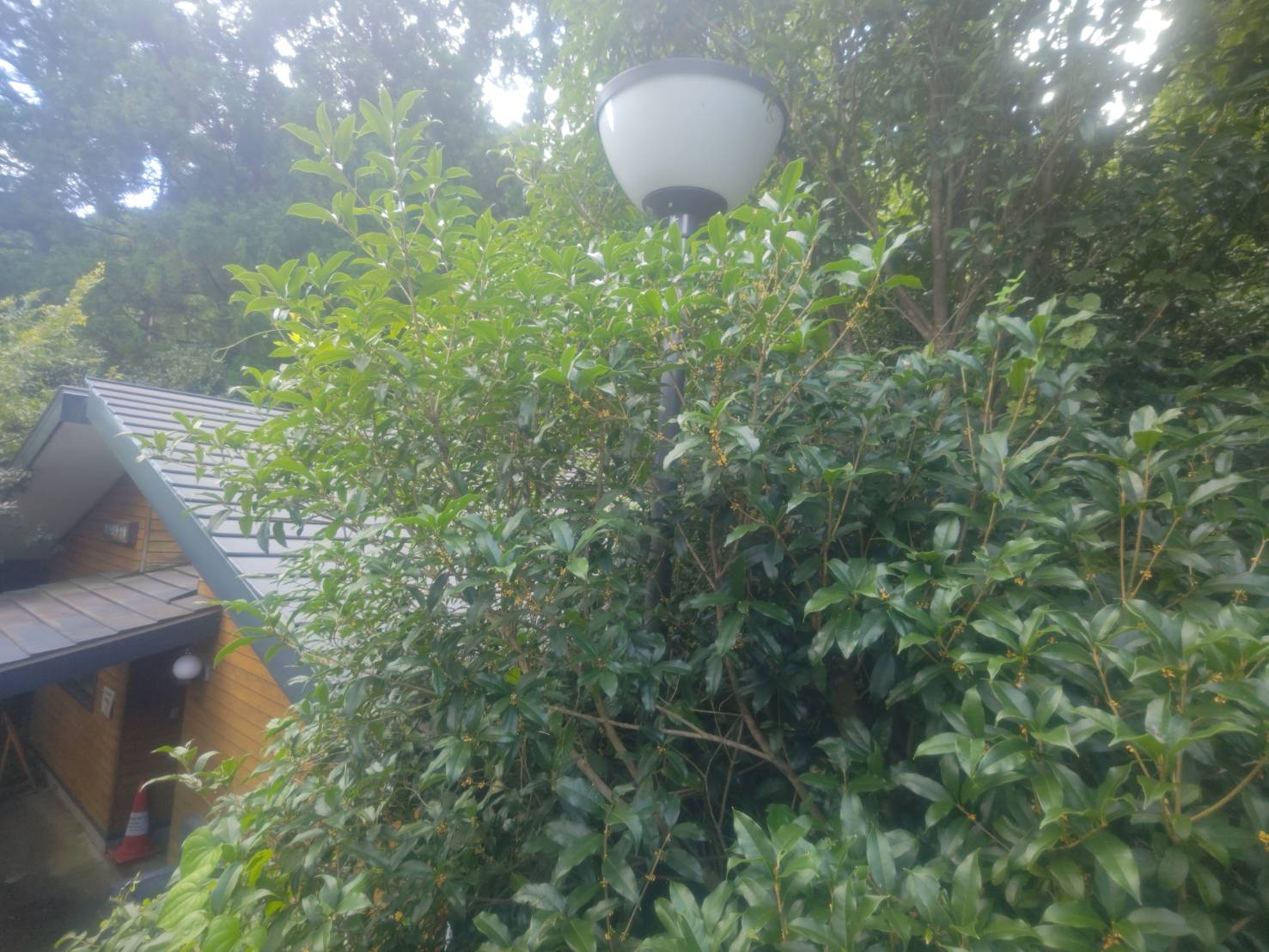研修作業棟横の野外トイレ脇にあるキンモクセイの花が開き始め、いい香りが漂い始めました。管理棟前など、他の場所にもキンモクセイはありますが今年はまだ咲いていません。