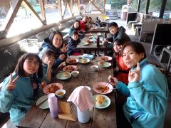 まず初めに、班ごとに自己紹介をしてから野外炊事に必要な薪を拾いに行きました。