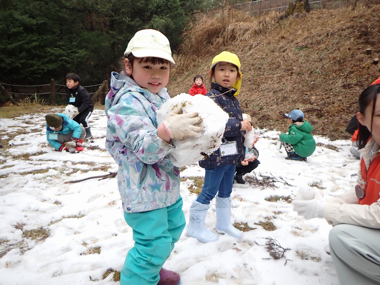施設に1か所だけ、雪が残っている場所があったので、今回は山あそびと雪あそびっを楽しむことができました!