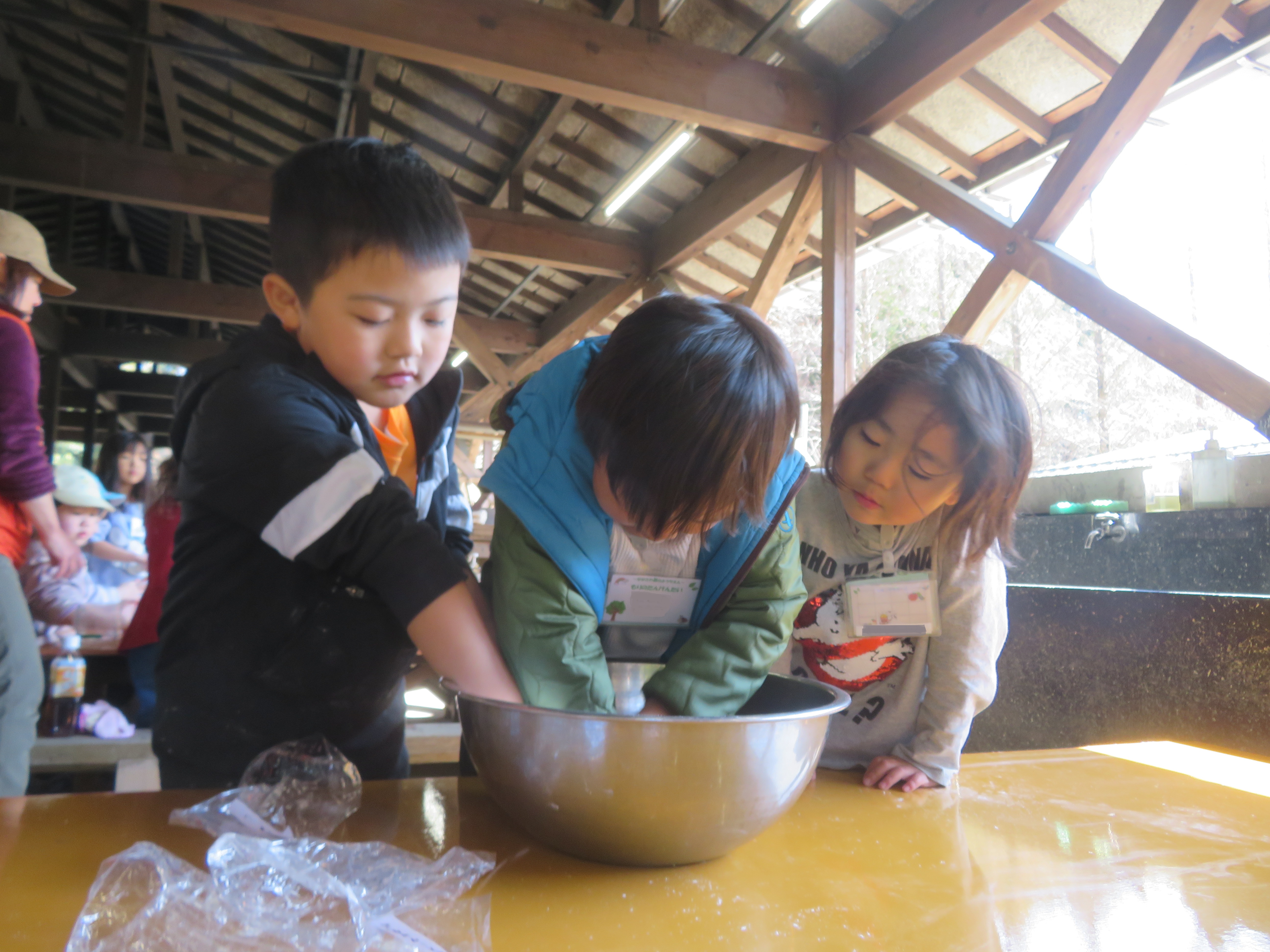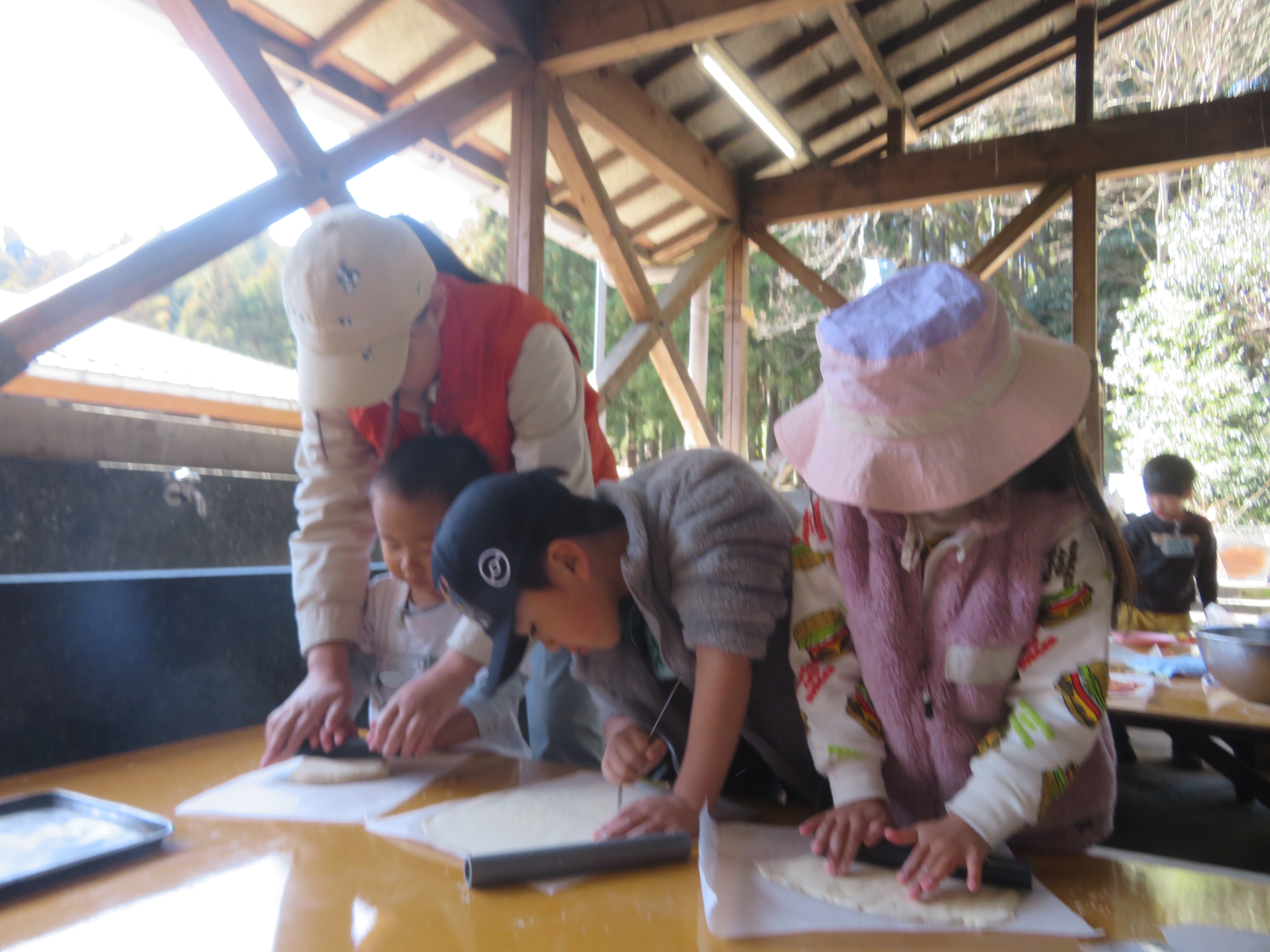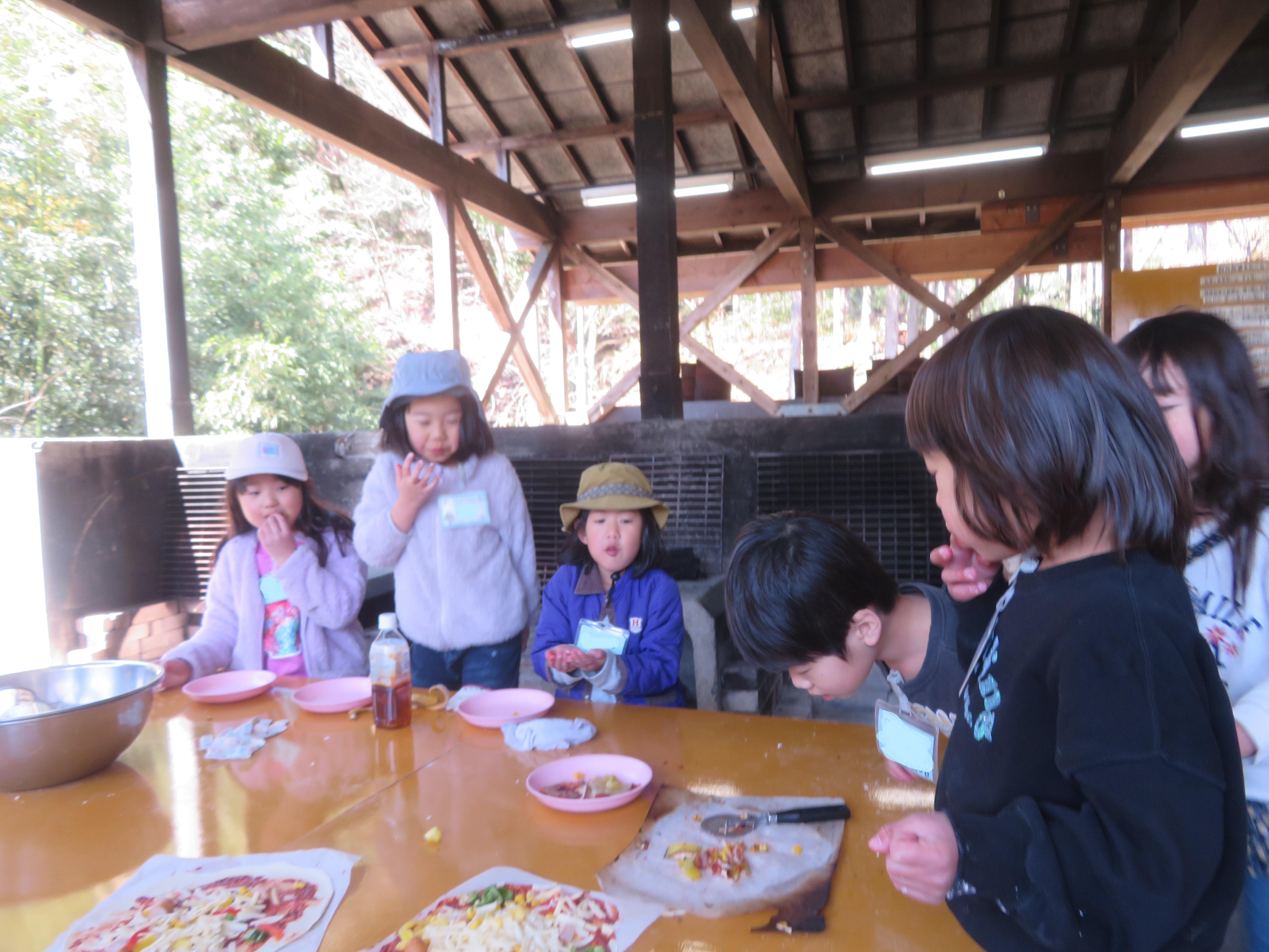 あっという間の2日間。「もっと泊まりた~い!」という声も聞こえてきました。スタッフも、みんなと過ごした2日間がとても楽しかったようです。ピザづくりも、生地をこねて伸ばすところから、とても上手に作ることができました!おとまりの2日間を過ごす中で、一緒に過ごしたおともだちとも、名前を呼びあったり、助け合ったりする場面もたくさんありました。仲が深まったのかな、と感じました。たんけん隊はまた5月から活動していきますので、またみんなと一緒に、森の中で沢山の発見ができるのを楽しみにしております。ご参加いただきありがとうございました。(山美)