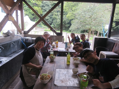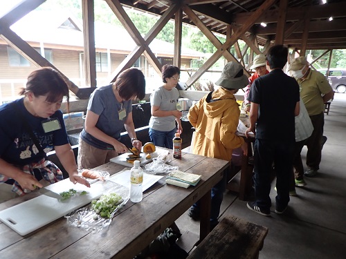 大人のための外遊びクラブ~藍染めとかぼちゃの冷やしうどん~