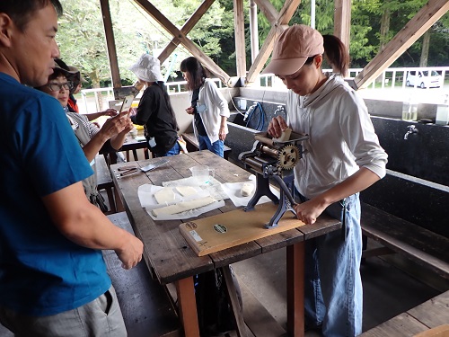 今回、うどんを麺から作ったり藍を使った染め物など昔行われていたことをやってみました。