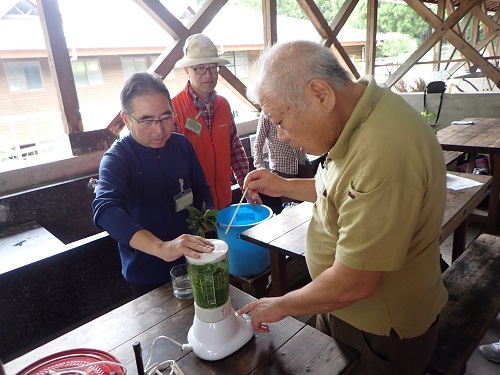 とってきた藍を葉だけにしてミキサーで細かくして染液をつくりました。