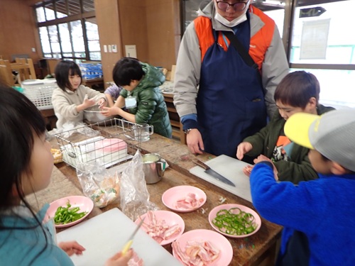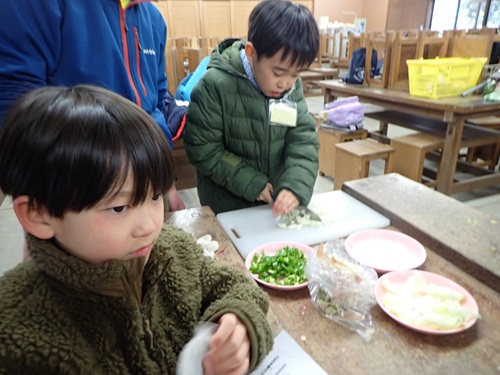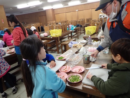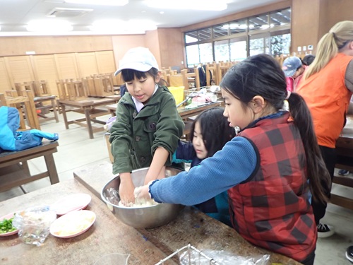 朝食を食べてお部屋の掃除をしたら野外炊事の時間です。