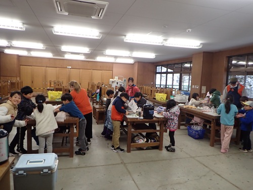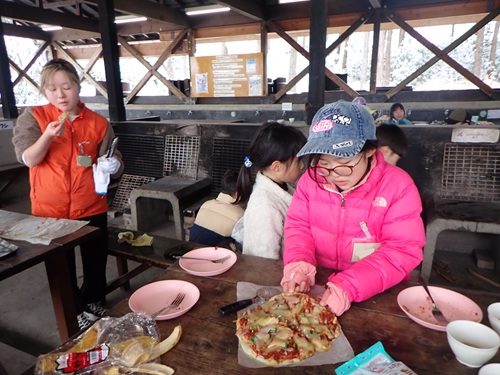 とても寒かったのでピザ作りと洗い物は作業室で行いました。