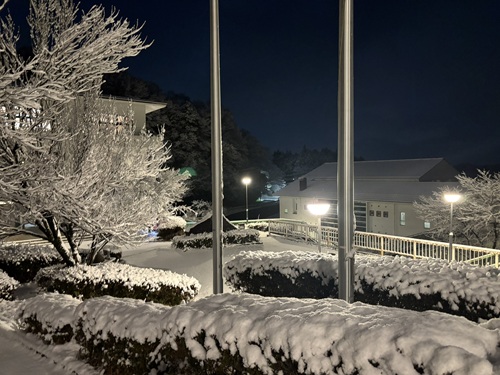 早朝外に出ると一面の雪景色になっていました。